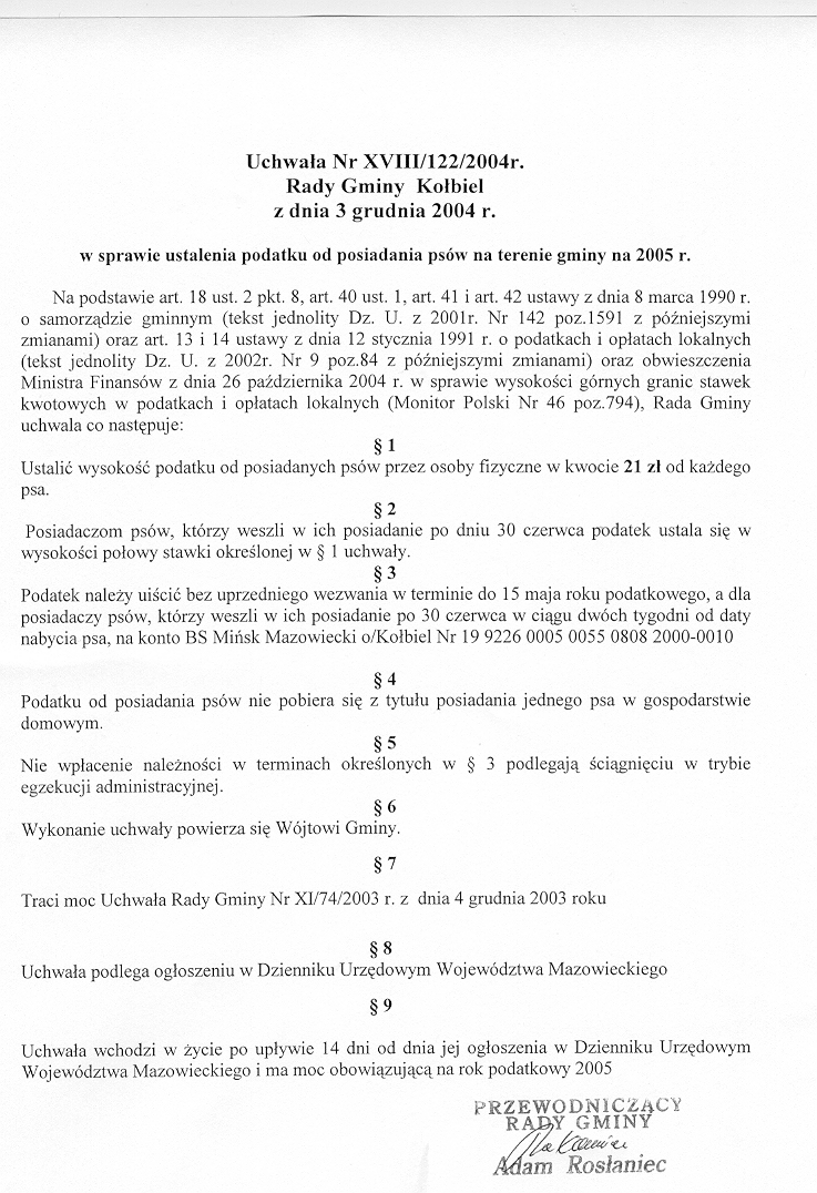 Uchwały Rady Gminy Kołbiel z 2004 roku