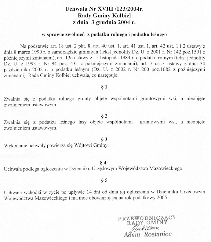 Uchwały Rady Gminy Kołbiel z 2004 roku
