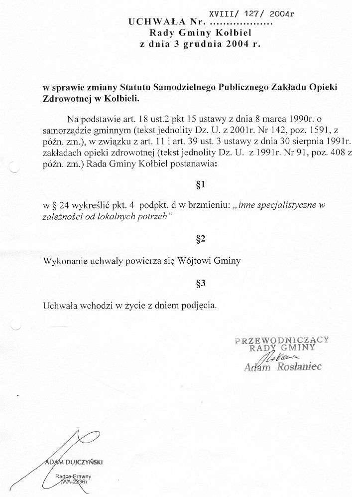 Uchwały Rady Gminy Kołbiel z 2004 roku