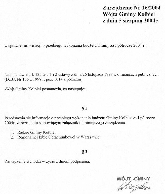 Zarządzenia Wójta Gminy z 2004 roku